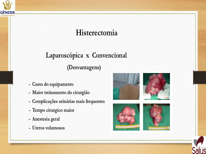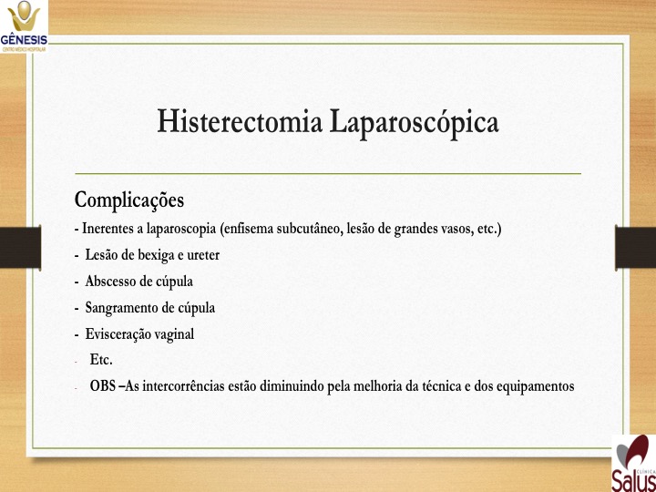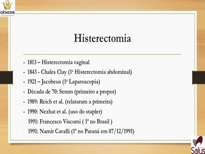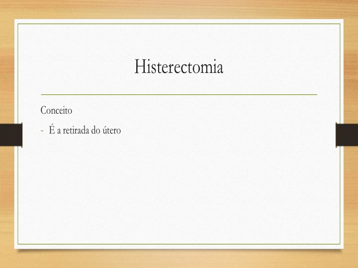 -Histerectomia total ampliada – casos de câncer – retira útero, ovários e trompas, terço superior de vagina e gânglios ao redor do útero.
